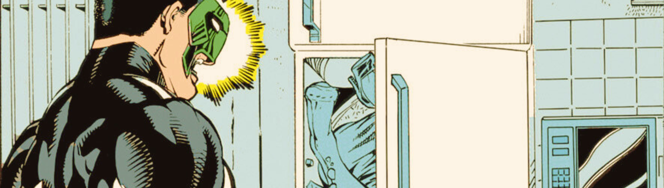 Agora, antes que eu comece a me alongar, vamos traçar o paralelo com a lista Women in Refrigerators (Mulheres na Geladeira). Escrita em noventa e nove pela escritora Gail Simone, ela é um catálogo de mais de cem personagens femininas de quadrinhos que foram mortas, mutiladas, agredidas física e moralmente ou desempoderadas de alguma forma, sempre para servir como potencializadores do desenvolvimento de personagens em sua maioria masculinos. Muito semelhante ao movimento feito por Aoko Matsuda em A Mulher Morre. O nome da lista vem de um incidente em Green Lantern, vol. 3, #54, onde a namorada do herói é encontrada morta dentro de uma geladeira.